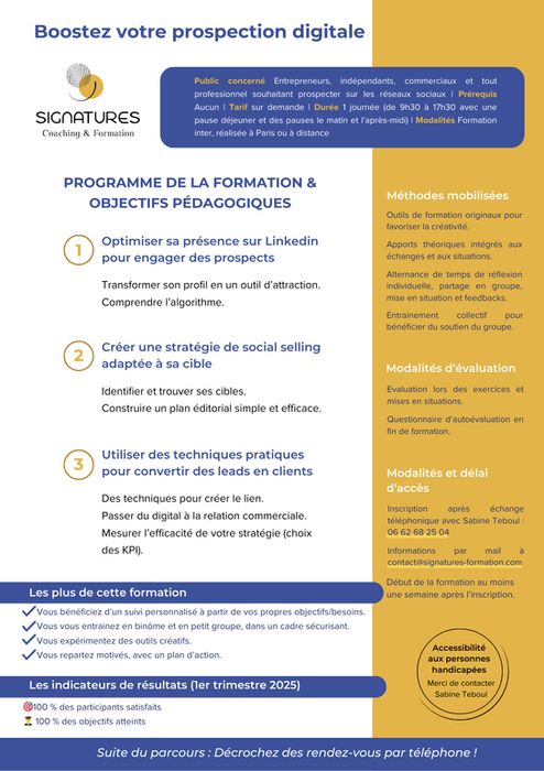 Le télétravail, les rendez-vous à distance, les réseaux sociaux et les nouvelles attentes des clients imposent d’évoluer. Nos formations intègrent ces nouveaux usages pour vous permettre de performer dans tous les contextes, qu’ils soient en présentiel, hybrides ou 100 % à distance.